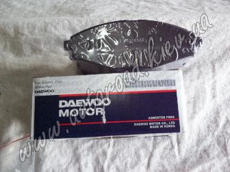 Комплект колодок переднего дискового тормозного механизма на Daewoo Nexia Узбекской сборки с 2002г заводским 13-м радиусом колеса и суппортами для тормозной системы Akebono Корейского концерна Daewoo Motor Co., Ltd, Корея для OE №96316582 (96281945 96273708 96446176 96288629 S4510004)