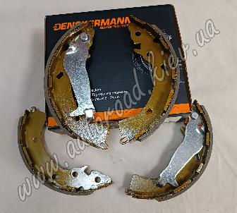 Комплект гальмівних колодок заднього барабанного гальмівного механізму польського постачальника Denckermann на Kia Rio з 2011р по 2017р для OE №58350-0PA00 (58350 0PA00 583500PA00 58305-0UA00 58305 0UA00 583050UA00 58305-3XA00 58305 3XA00 583053XA00 58305-0XA10 583050XA10 58305 0XA10 58305-C7A00 58305C7A00 58305 C7A00)